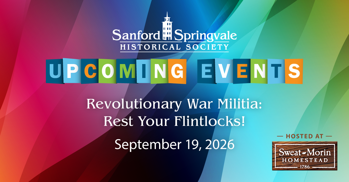 EVENT DETAILS Saturday, September 19, 2026 House Tour: 10:00 AM Program: 11:00 AM – 12:30 PM Address: Sweat-Morin Homestead, 374 School Street, Sanford, ME The homestead house and barn are handicapped accessible.